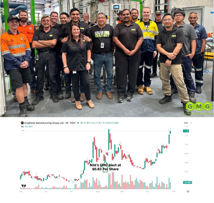 On August 12th, NIA alerted its members to Graphene Manufacturing Group (TSXV: GMG) at $0.83…
