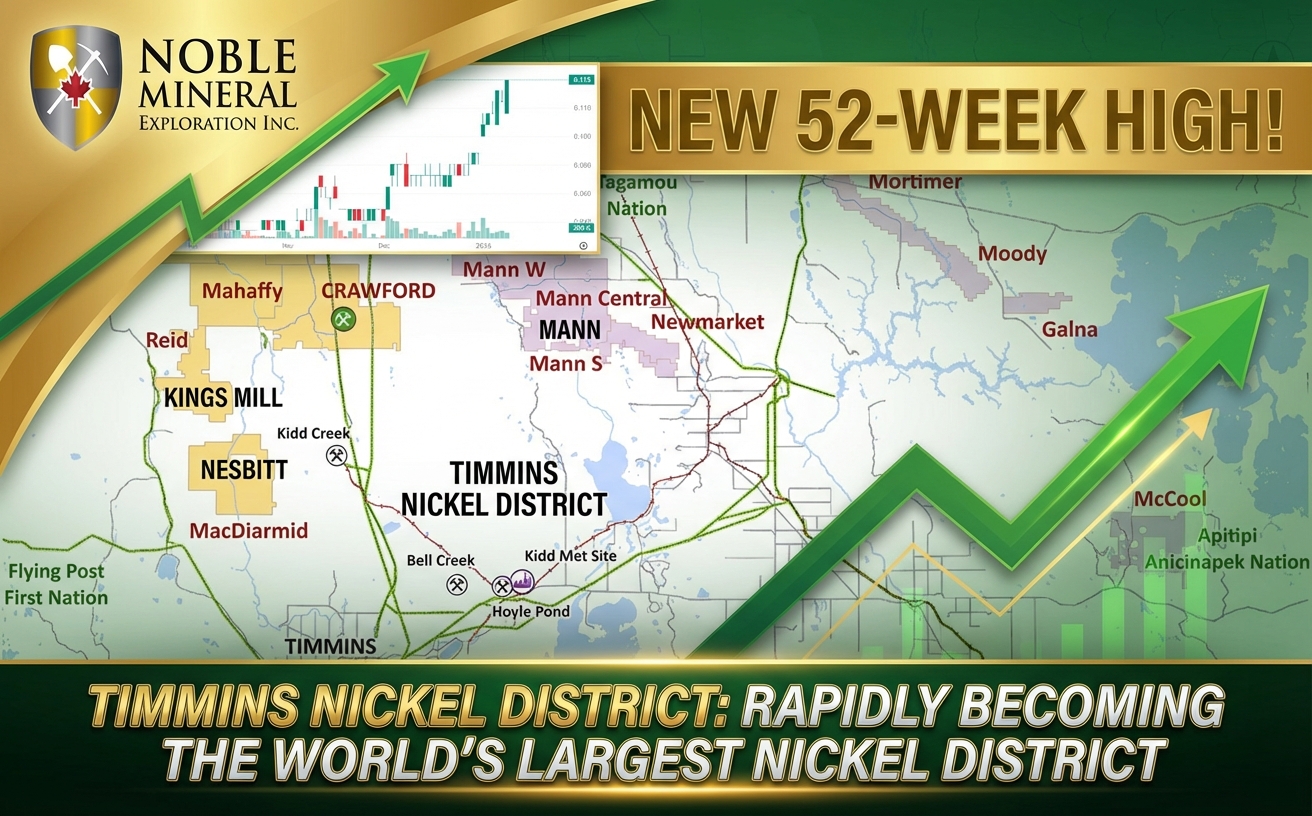 NIA's second to latest brand-new stock suggestion Noble Mineral Exploration (TSXV: NOB) gained by 9.52%…