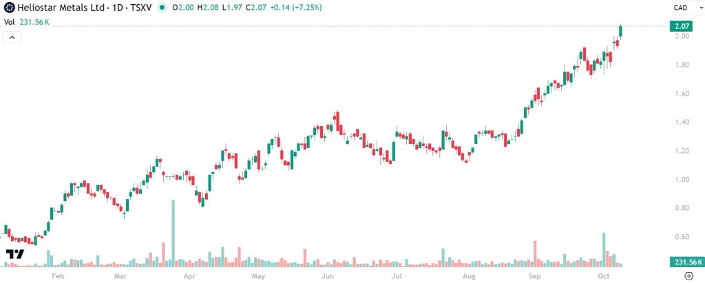 Heliostar Metals (TSXV: HSTR) is up by 7.25% this morning to a new all-time high of $2.07 per share for a gain of 67.61% since NIA's July 15th suggestion at $1.235 per share. NIA highlighted on July 22nd how HSTR's Ana Paula is one of the world's best gold development projects. Click here to see.
