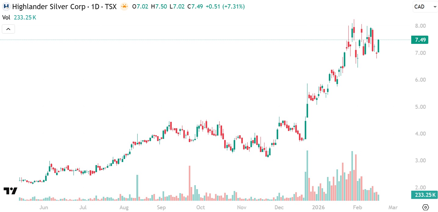 We would much rather own the assets Highlander Silver (TSX: HSLV) will own post-merger with Bear Creek Mining. HSLV gained 7.31% yesterday to $7.49, and new all-time highs are coming soon.