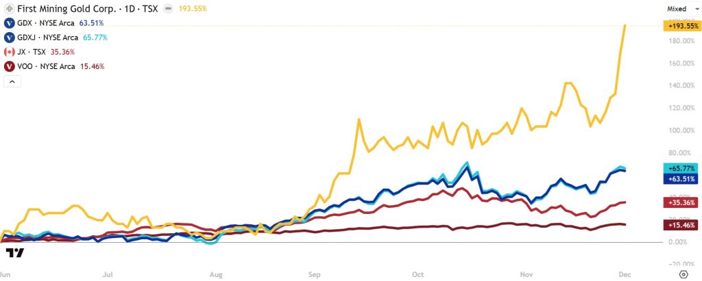 Since NIA's suggestion exactly six months ago… First Mining Gold (TSX: FF) has outperformed: