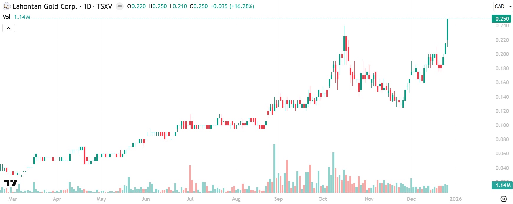 Lahontan Gold (TSXV: LG) gained by 16.28% on Wednesday to a new 52-week high of $0.25 per share but continues to trade at a market cap of only US$32.92 per oz of gold resources in Nevada!