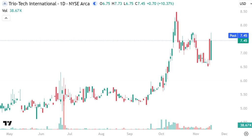 NIA's #2 favorite overall stock suggestion for 2026, Trio-Tech International (TRT) gained by 10.37% today to $7.45 per share!
