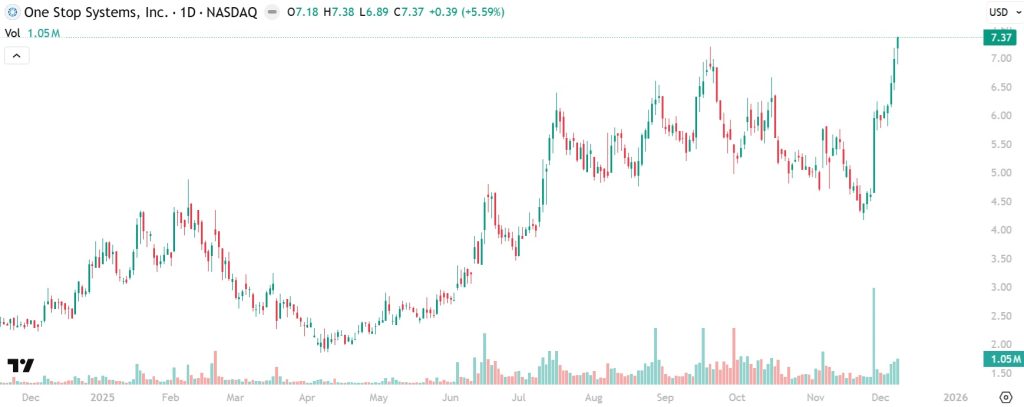 One year ago on December 5, 2024, NIA announced One Stop Systems (OSS) at $2.41 per share as its #1 favorite overall stock suggestion for 2025. OSS gained by 5.59% today to a new 57-month high of $7.37 per share for a one-year gain of 205.81%.