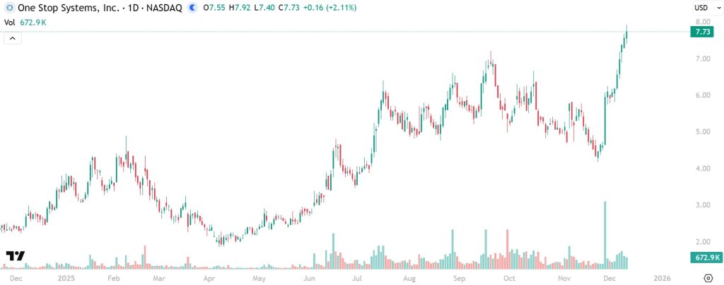 One year ago on December 5, 2024, NIA announced One Stop Systems (OSS) at $2.41 per share as its #1 favorite overall stock suggestion for 2025. OSS gained by 2.11% today to a new 52-week high of $7.73 per share for a one-year gain of 220.75%.