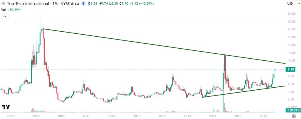 Trio-Tech International (TRT) in particular has 10-bagger potential for 2026 and is fast approaching its most important long-term key breakout point of $11.70 per share!