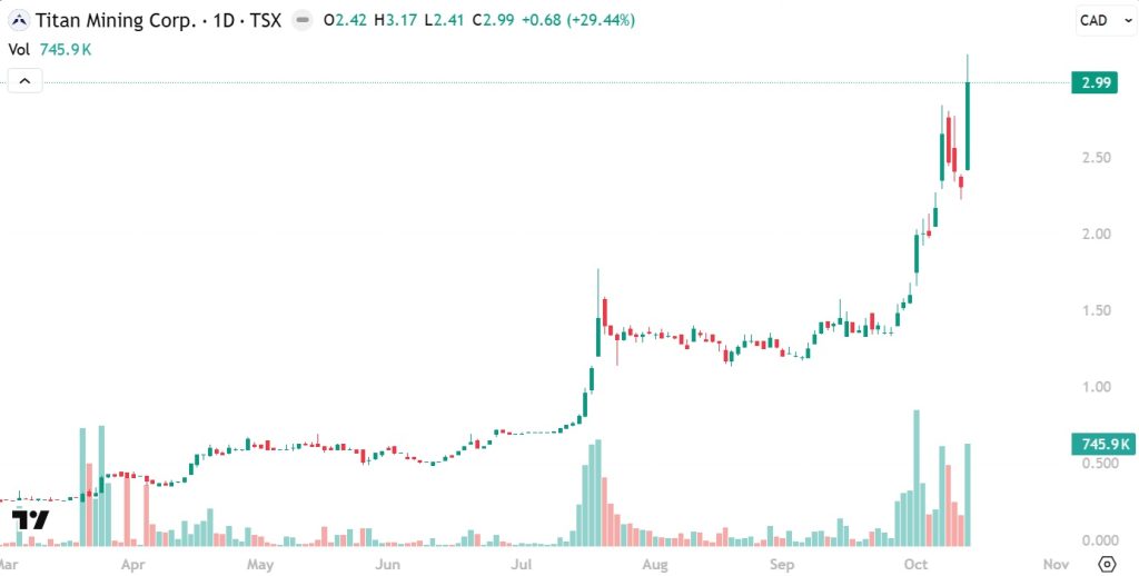 NIA’s #1 Pick for 2026: Titan Mining (TSX: TI) Gains 29.44% to New All-Time High of $2.99
