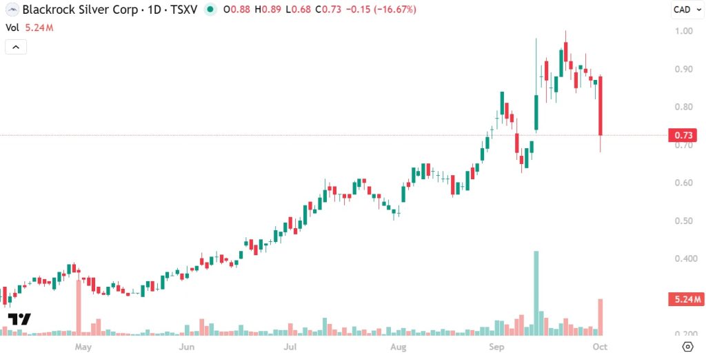 Blackrock Silver (TSXV: BRC) is down by 16.67% today to $0.73 per share and is one of the only junior resource stocks to have already peaked for this cycle.