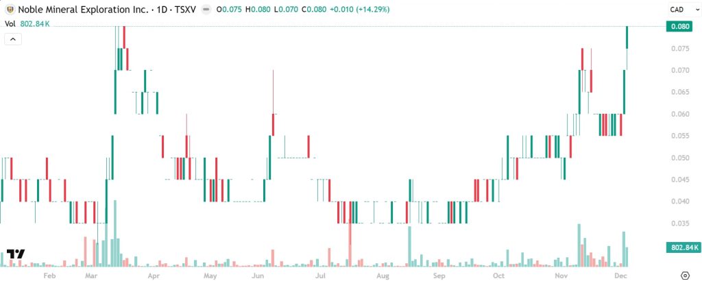 Noble (TSXV: NOB) Gains 14.29% to $0.08 Per Share