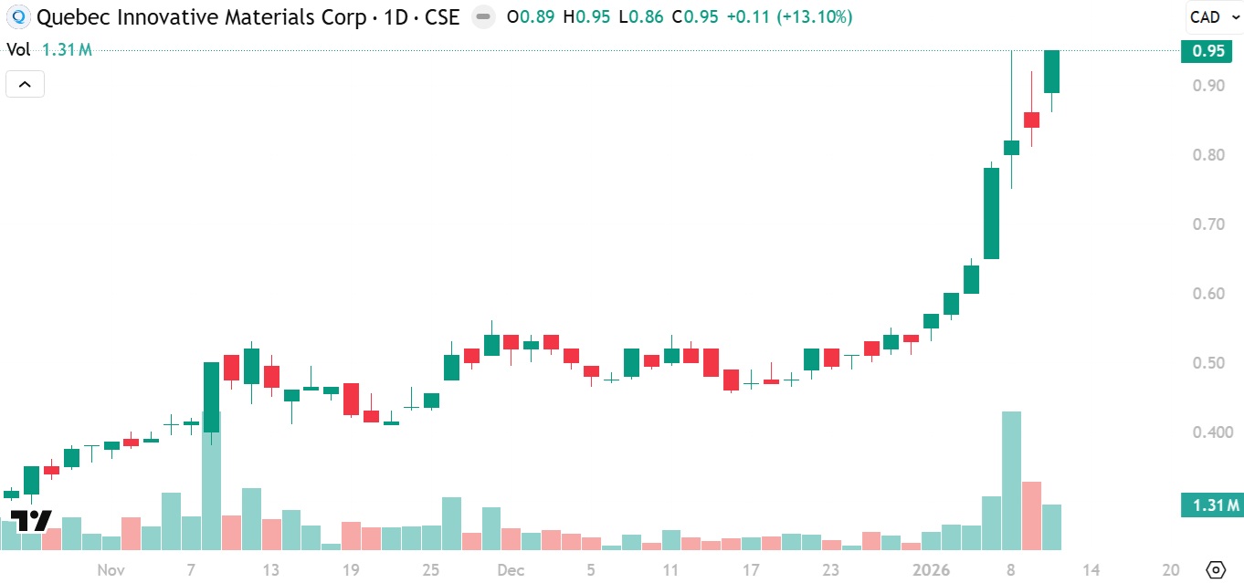 NIA's third to latest brand-new stock suggestion QI Materials (CSE: QIMC) gained by 13.10% today to a new all-time high of $0.95 per share! The move reflects growing investor recognition that QIMC is positioned at the intersection of natural hydrogen discovery and off-grid AI data center infrastructure—addressing the single greatest constraint on AI’s growth: reliable, clean power!
