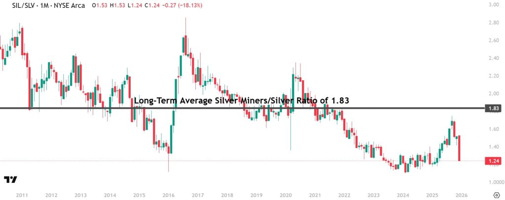 This morning, the SIL/SLV ratio hit a new 8-month low of 1.24 and is approaching the February 2024 all-time low of 1.10.