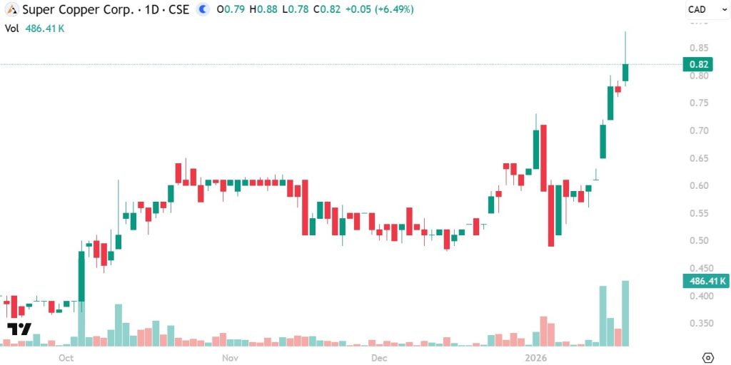 Super Copper Gains 6.49% to New 52-Week High of $0.82!