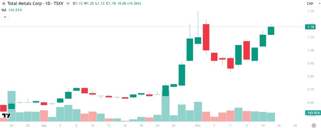 Total Metals (TSXV: TT) Gains 5.36% to New All-Time Closing High of $1.18!
