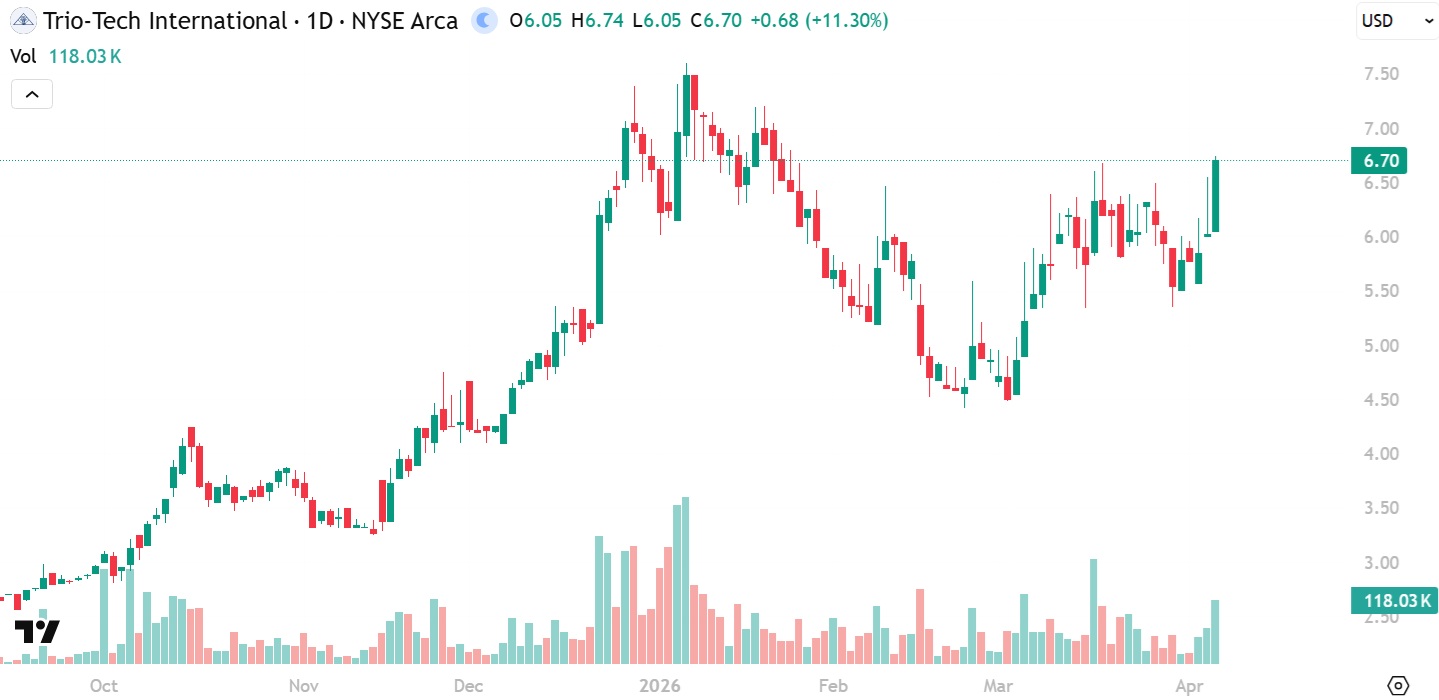 NIA’s #1 favorite AI stock suggestion and #2 favorite overall stock suggestion for 2026, Trio-Tech International (TRT) gained by 11.30% today to $6.70 per share and new all-time highs are coming soon.