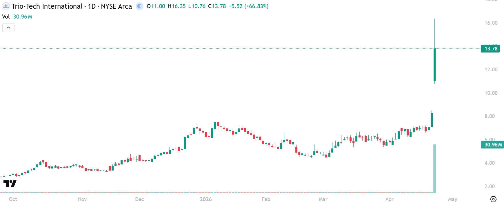 Trio-Tech (TRT) Soars 66.83% to New All-Time High of $13.78