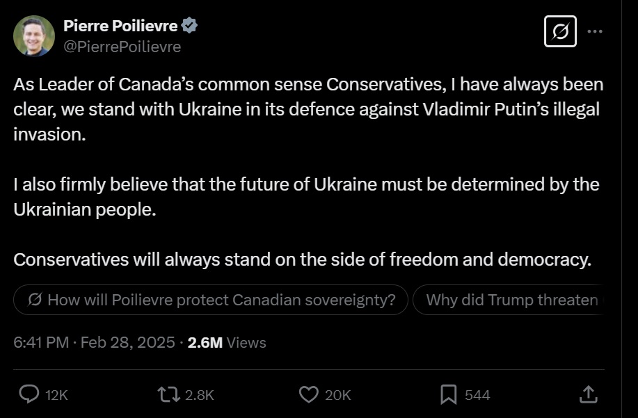 🚨🚨 Zelensky is a self serving Dictator. He is a liar and a thief. He has the blood of thousands of Ukrainian people on his hands. When we sent out our alert on Friday afternoon it was hours before Pierre Poilievre even tweeted on X, but we knew exactly what he was going to say… How is this any different from Chrystia Freeland who Trump appropriately called a whack? Pierre does understand that dictator Zelensky is pulling innocent Ukrainian citizens off the street to die in an unwinnable war while leaving their dogs in the street to fend for themselves and potentially get hit by a car??? President Trump said Pierre’s biggest problem is he is not a MAGA guy, and Pierre says he isn’t MAGA he is for Canada First. Clearly, he is copying Trump but also trying to distance himself from Trump at the same time, which is very strange and is exactly why we said months ago Trump has no idea what to think of this guy. Pierre has potential to be the greatest Canadian leader in history but is going to ruin everything. Trump obviously knows Pierre is for Canada, but he should at least support Trump on issues like Ukraine instead of sounding like one of these loser politicians from the EU!!! Trump was actually trying to give Zelensky a really good deal with obtaining the mineral rights. If these Rare Earth projects haven’t been considered for privately funded development like Ukraine’s titanium mines that are in production… maybe they aren’t the most profitable Rare Earth deposits to bring into production like the ones Trump wants to buy in Greenland. Trump was actually trying to help Zelensky by having Americans in the country developing government-backed mines, so Russia is less likely to attack them, and we become less dependent on Rare Earth Element imports from China even if we aren’t making huge profits from the mines. The fact is Putin has never invaded Kyiv he is in small towns on the border of Russia protecting people who speak Russian from being attacked by Zelensky who has become a billionaire from the war and doesn’t want it to end!