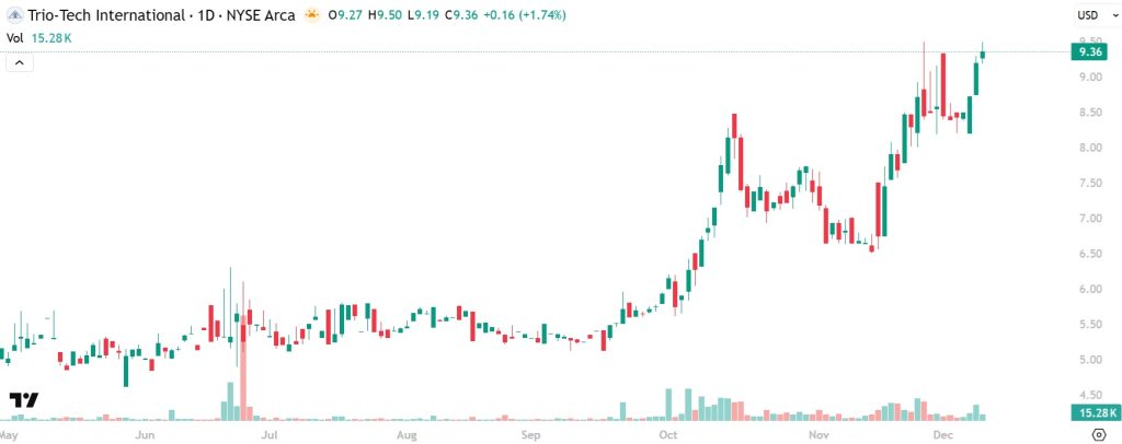 Two months ago, NIA announced Trio-Tech International (TRT) at $6 per share as its #2 favorite overall stock suggestion for 2026. TRT gained by 1.74% on Tuesday to a new 2025 closing high of $9.36 per share for a two-month gain of 56%.