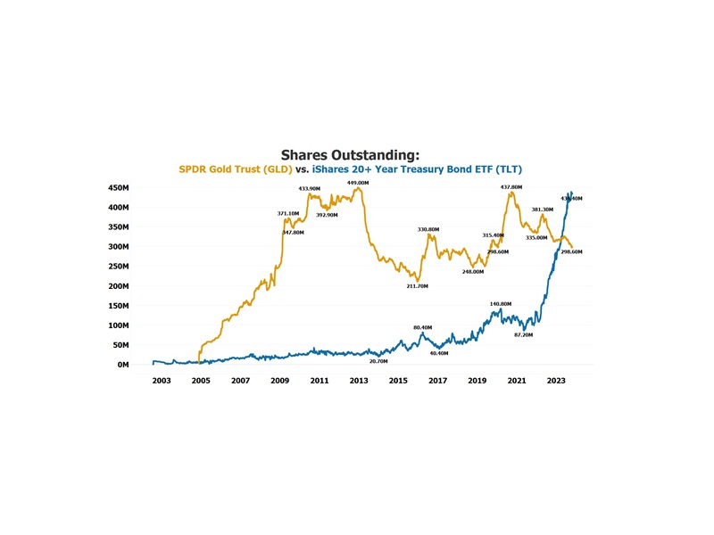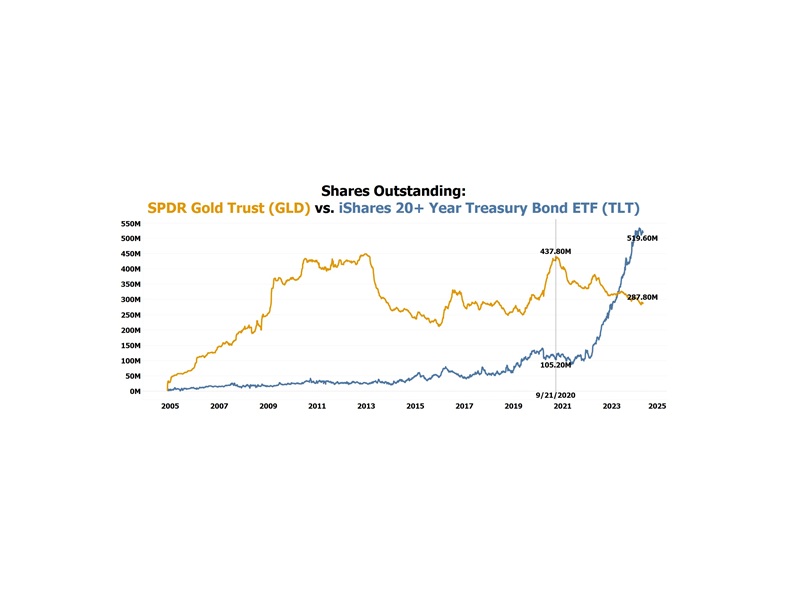 Since September 21, 2020, the shares outstanding of SPDR Gold Trust (GLD) have declined from…