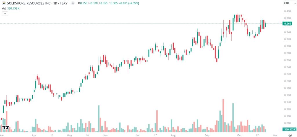 Goldshore (TSXV: GSHR) Gains by 4.29% to $0.365 Per Share