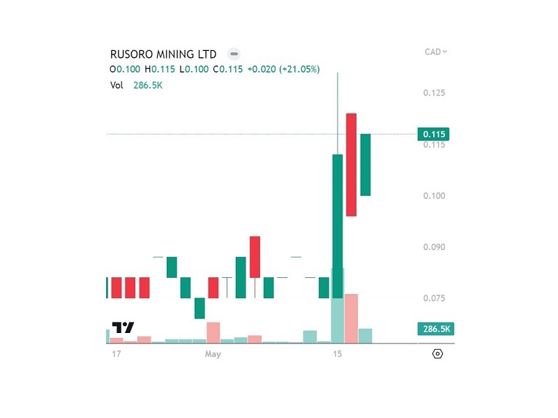 Rusoro Mining (TSXV: RML) gained by 21.05% today to $0.115 per share!